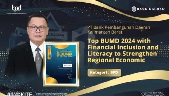 Bank Kalbar meraih prestasi gemilang dalam ajang Indonesia Best BUMD Awards 2024 dengan meraih penghargaan sebagai Top BUMD 2024 dalam kategori BPD.
