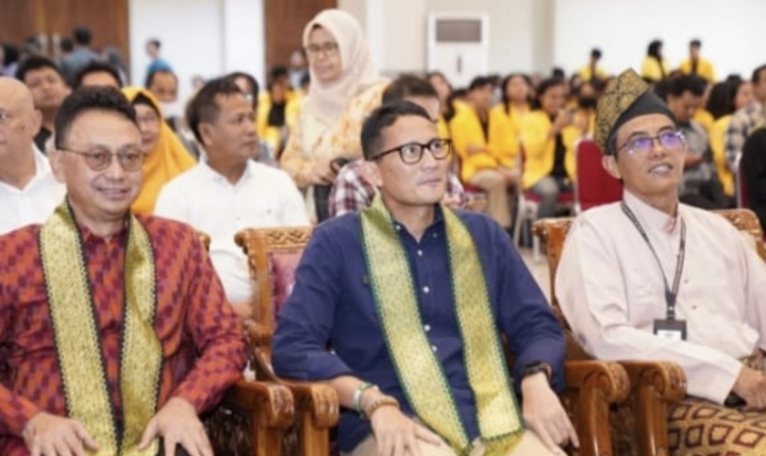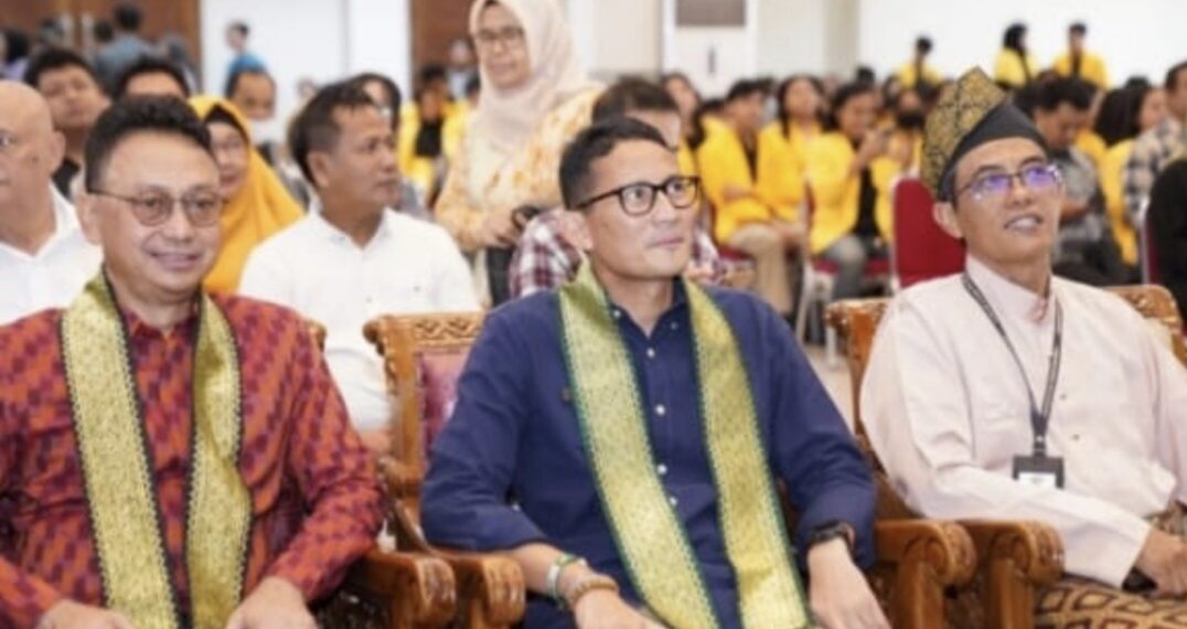 Wali Kota Pontianak Edi Rusdi Kamtono bersama Menteri Pariwisata dan Ekonomi Kreatif (Menparekraf) Sandiaga Uno menjadi pembicara pada Kuliah Umum Peran Pemerintah dalam Pemberdayaan Usaha Mikro Kecil dan Menengah (UMKM) di Aula Universitas Panca Bhakti (UPB), Sabtu (18/11/2023).