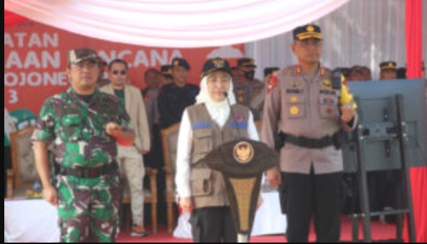 Bupati Bojonegoro Anna Mu’awanah memimpin apel peringatan Hari Kesiapsiagaan Bencana Kabupaten Bojonegoro Tahun 2023 di lapangan tembak Kodim 0813 di Desa Banjarsari Kecamatan Trucuk, Selasa (16/5/2023). Apel dihadiri Kepala Bakorwil, Kapolres, Dandim 0813, dan Ketua DPRD Bojonegoro.