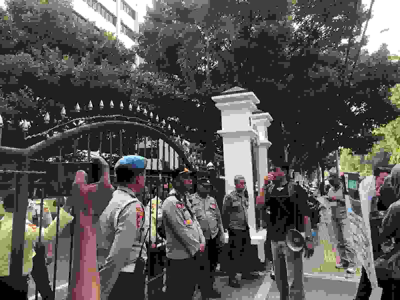 Diperkirakan sebanyak 50 orang massa terlibat dalam aksi tersebut, dengan membawa spanduk, toa, dan berbagai atribut pernyataan sikap.