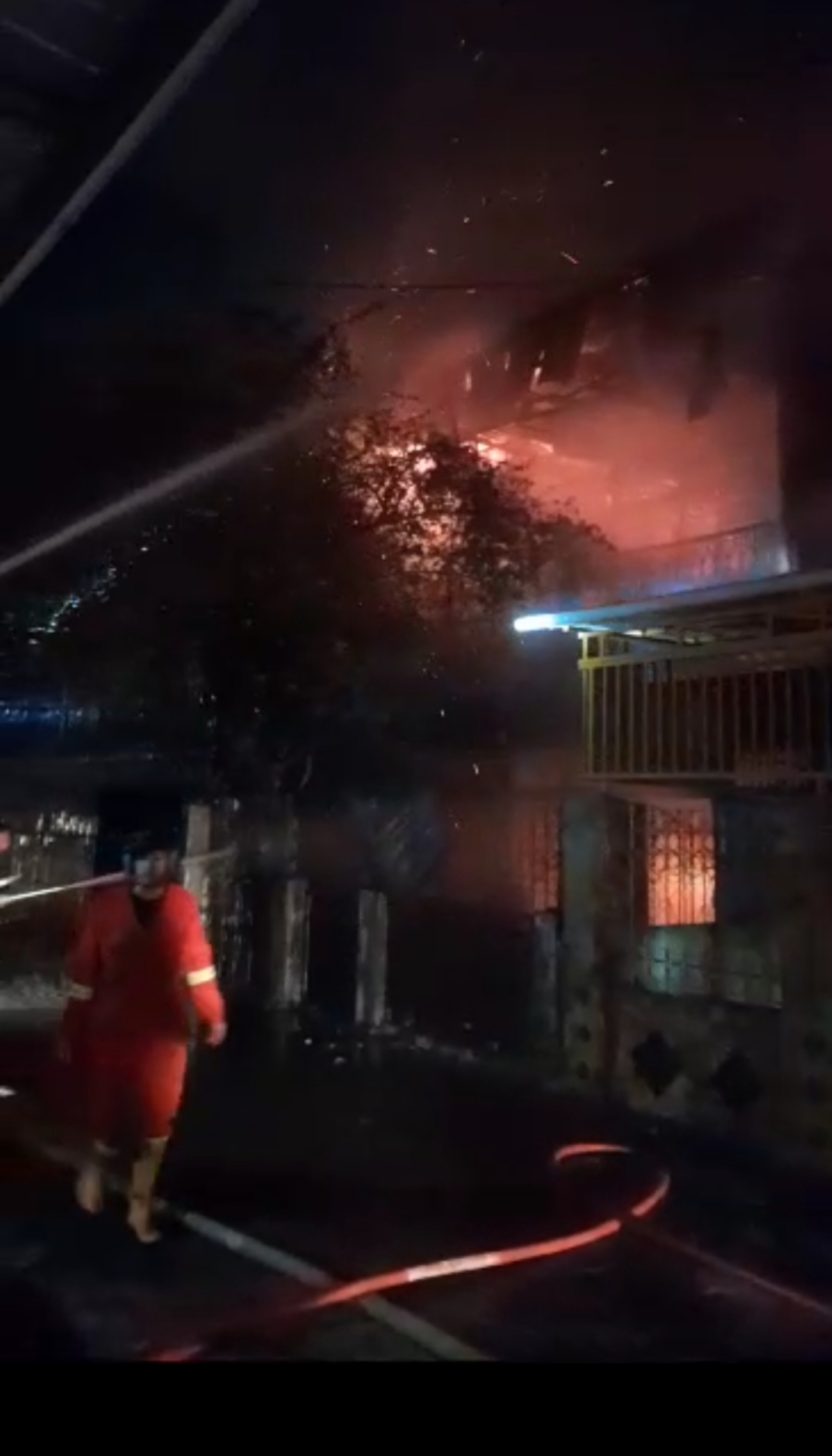 Seorang saksi mata berinisial GIE (45 tahun) mengungkapkan dirinya pertama melihat api berkobar dari rumah kosong milik Atong (56 tahun).