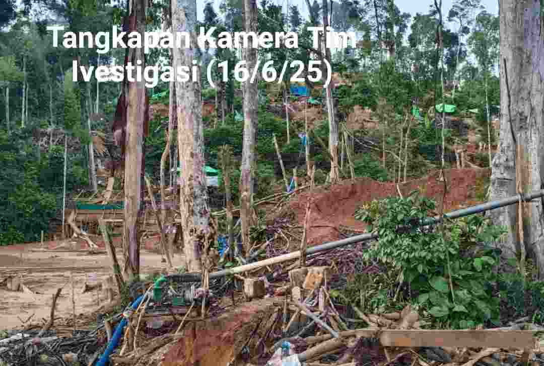 Tim investigasi menempuh perjalanan darat selama 4 hingga 5 jam melewati jalan rusak parah sebelum tiba di lokasi. Hasil pantauan mencatat puluhan hingga mendekati ratusan unit mesin tambang (dompeng) beroperasi aktif di tengah kawasan hutan, membongkar lapisan tanah dan merusak vegetasi hutan tropis yang masih alami.