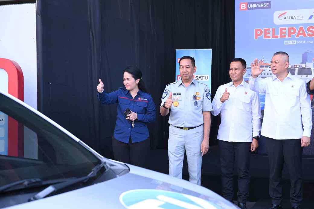Jasa Raharja menghadiri acara pelepasan Tim Liputan Arus Mudik B-Universe 2026 yang digelar di Kantor B-Universe, Tangerang, Selasa (10/3).