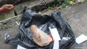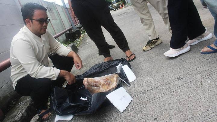 Hussein, Cica, serta beberapa wartawan membawa kotak kardus di keluar gedung. Setelah kotak kardus sudah dibuka seluruhnya, tampak kepala babi dalam kondisi kedua telinganya terpotong. (RA)