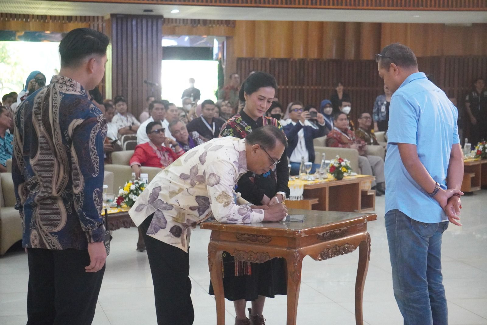Selain Wamenkumham, penandatanganan juga disaksikan oleh Pimpinan Tinggi Pratama Kantor Wilayah, Kepala UPT se Eks Karesidenan Semarang dan Surakarta serta peserta kegiatan yang merupakan Civitas Akademika Universitas Kristen Satya Wacana dan Aparat Penegak Hukum.