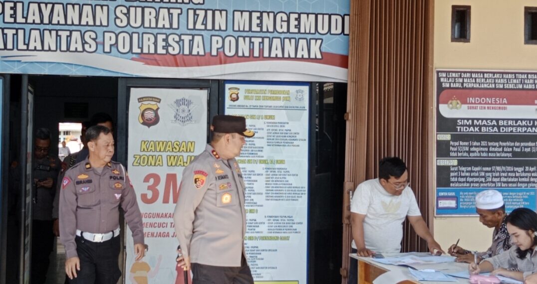 Kapolda Kalimantan Barat Irjen Pol Pipit Rismanto, S.I.K., M.H., Selasa pagi (18/07/2023) melakukan inspeksi mendadak (Sidak) kekantor Satuan Penerbitan Administrasi SIM (SATPAS) Polresta Pontianak.