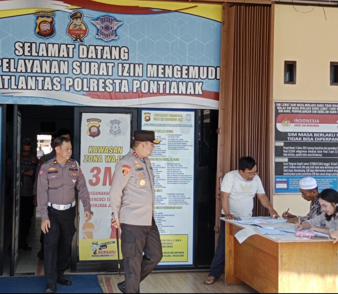 Kedatangan Kapolda secara mendadak ke kantor SATPAS Polresta Pontianak Jl.Martadinata ini tanpa didampingi PJU. Saat mobil Kapolda masuk ke kantor SATPAS, Pipit Rismanto langsung mengecek ke tempat praktek pembuatan SIM. Kapolda sempat bertanya dengan sejumlah pemohon SIM.