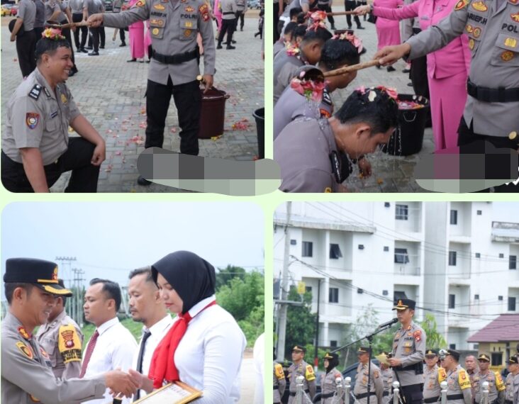 Upacara Kenaikan Pangkat Personil Polres Kubu Raya tersebut ditandai dengan tradisi Kesatuan siram Bunga sebagai tanda syukur yang diikuti oleh seluruh personil yang menerima kenaikan pangkat dan disaksikan oleh Bhayangkari Polres Kubu Raya. (Humas ResKKR). (buyung).