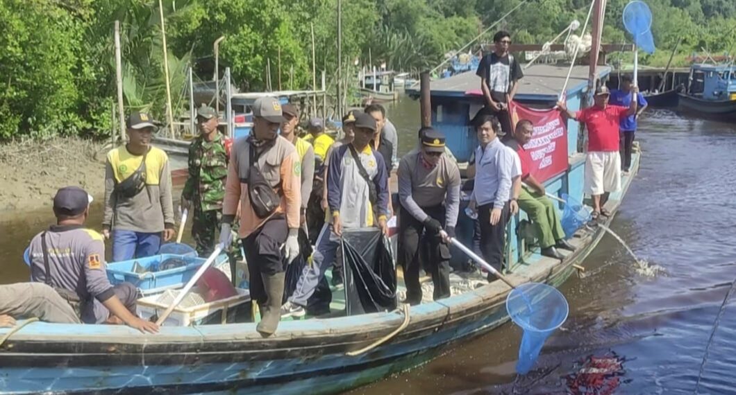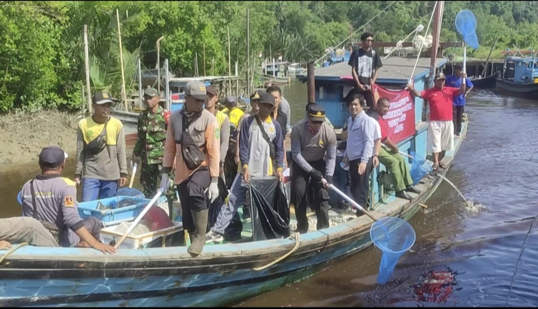 KAPOLSEK SINGKAWANG SELATAN TURUN LANGSUNG PADA AKSI BERSIH BERSIH SUNGAI SEDAU SAMBUT HUT BHAYANGKARA KE-77 TAHUN 2023