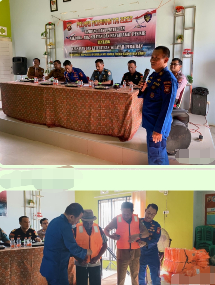 Penyidik Perikanan Stasiun PSDKP Ptk Koko Hardito, S. St Pi., M. Tr Pi menyampaikan Atas nama Kepala Stasiun PSDKP Ptk mengucapkan terima kasih atas undangan dari Ditpolairud Polda Kalbar dalam kegiatan Polmas Perairan.