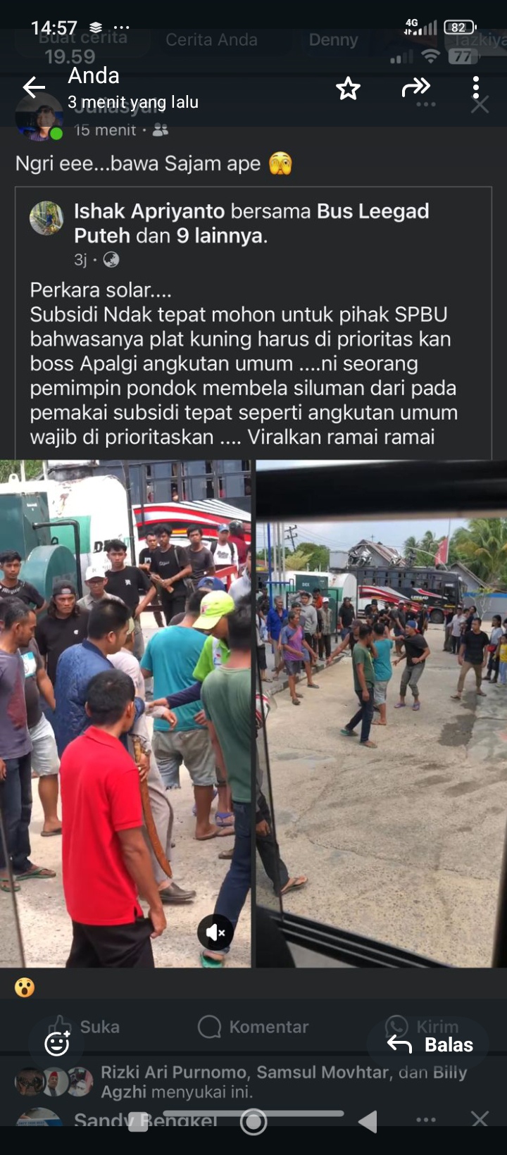 Dalam unggahan tersebut, seorang sopir yang sedang antre untuk mendapatkan solar mengungkapkan protes karena merasa hanya orang-orang tertentu, termasuk oknum tokoh agama, yang mendapat akses.