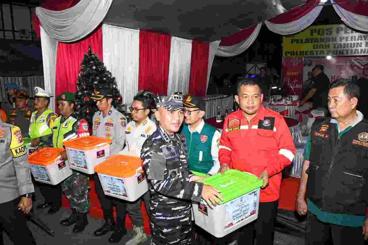 Selain melakukan peninjauan langsung, Forkopimda Kalbar juga menyerahkan dukungan logistik kepada personel pengamanan, sebagai bentuk apresiasi dan perhatian terhadap aparat yang bertugas di lapangan selama perayaan Natal.