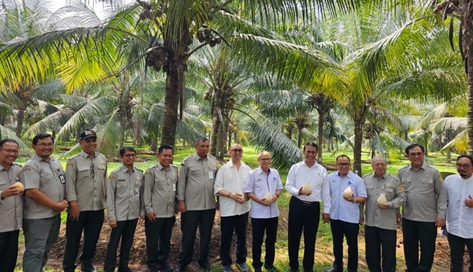 Menteri Pertanian, Andi Amran Sulaiman beserta jajaran staf Kementerian Pertanian melakukan kunjungan ke Kebun Kelapa Kopyor milik PT Riset Perkebunan Nusantara (RPN) yang terletak di Kota Bogor pada Senin, 10 Juni 2024.