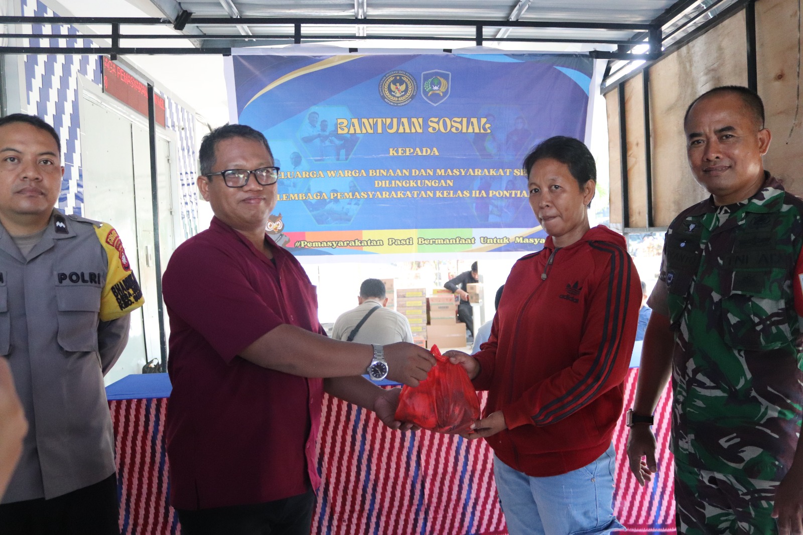 Penyaluran daging kepada masyarakat dilakukan langsung di halaman depan Lapas Pontianak. Masyarakat yang sebelumnya telah didata hadir secara tertib untuk menerima haknya. Daging qurban diserahkan langsung oleh Kepala Lapas Pontianak, Mut Zaini, didampingi oleh jajaran petugas serta pengamanan dari Polsek Sungai Raya dan Kodim 1207 Pontianak.