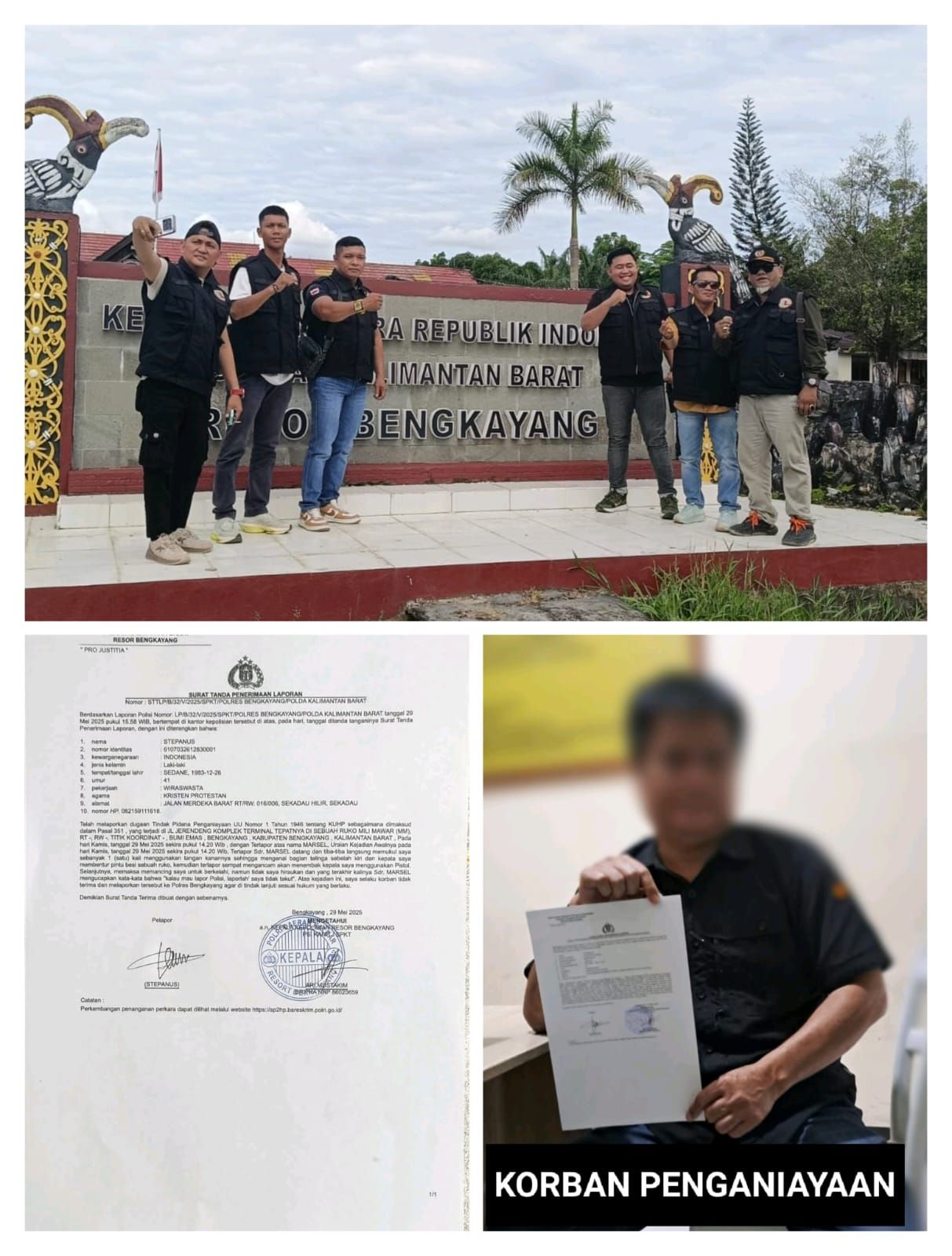 Berdasar kan laporan nomor: LP/B/32/2025/SPKT/POLRES BENGKAYANG POLDA KALBAR, tanggal 29 mei 2025 pukul 15:58 wib, sdra Stepanus telah melaporkan tindak penganiayaan UU no 1 tahun 1946 tentang KUHP sebagai di maksud dalam pasal 351 sesuai keterangan laporan juga bahwa korban di ancam mengunakan senpi, senjata api
