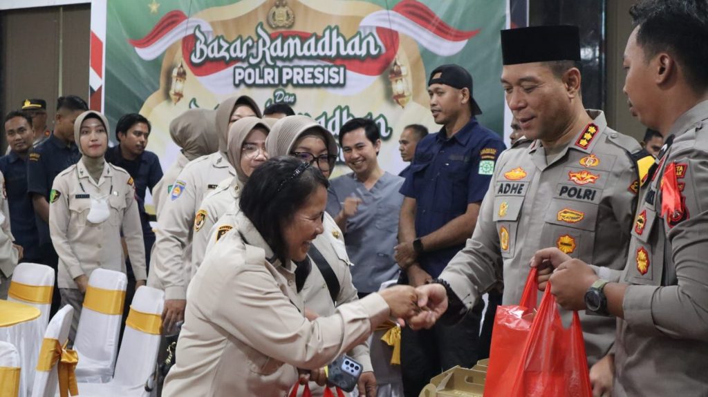 Pontianak – Dalam rangka menyambut Hari Raya Idulfitri 1446 H, Polresta Pontianak menggelar kegiatan Bazar Murah bagi personel Polresta Pontianak, petugas kebersihan, warakawuri, dan guru TK Bhayangkari. Kegiatan tersebut berlangsung di Ballroom Presisi Polresta Pontianak, Jumat (tanggal kegiatan).