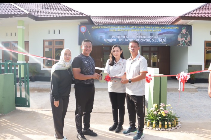 Pangdam Tanjungpura Serahkan Kunci Dua Unit Rumah Kabalakdam XII/Tpr Hasil Renovasi Swadaya