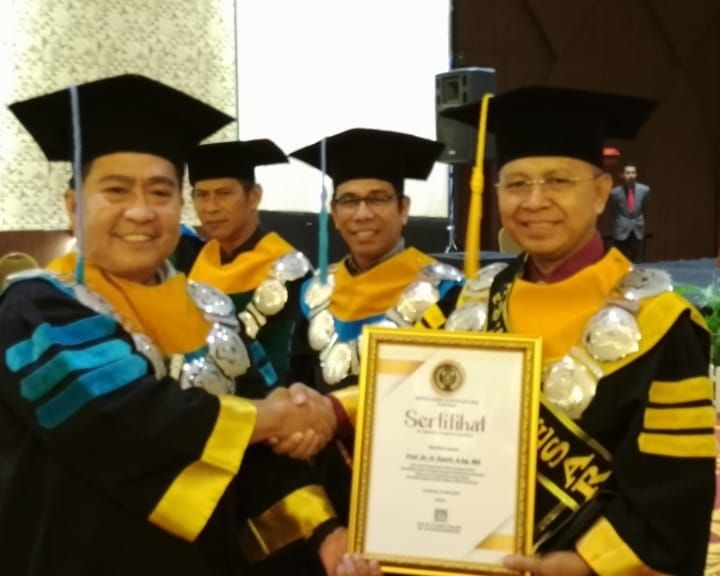 Diantara guru besar tersebut ada nama Rektor IAIN Pontaiank Prof. Dr. H. Syarif, S.Ag. MA juga ikut dalam pengukuhan guru besar.