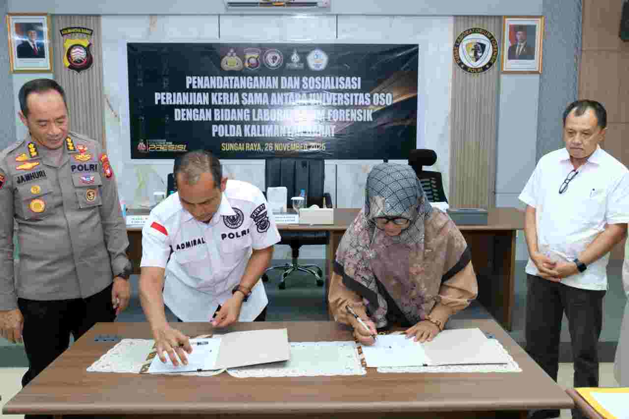 Bidang Laboratorium Forensik (Bidlabfor) Polda Kalimantan Barat memperkuat kualitas sumber daya manusia forensik melalui penandatanganan perjanjian kerja sama dengan Universitas OSO Pontianak, Rabu (26/11).