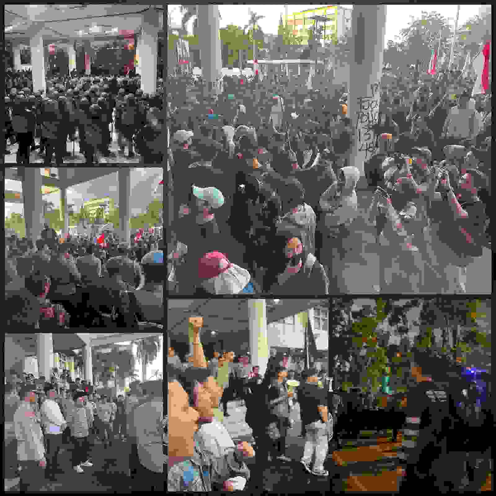 Seruan mahasiswa menggema lantang di halaman DPRD, spanduk dan bendera organisasi berkibar, sementara yel-yel perlawanan terus diteriakkan. Mereka menegaskan tidak akan berhenti sebelum aspirasi benar-benar didengar dan ditindaklanjuti.
