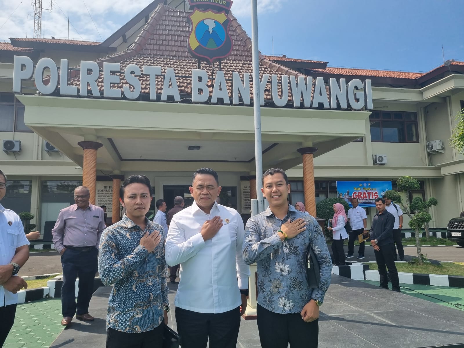 Didampingi Tim Oase Law Firm (OLF) dan Gerakan Nasional Pemberantasan Korupsi (GNPK) serta Tokoh Masyarakat, Kepala BPN Banyuwangi Budiono, Kapolresta Banyuwangi Kombes Pol Deddy Foury Millewa menerima kunjungan Brigjend Polisi Arif Rachman.