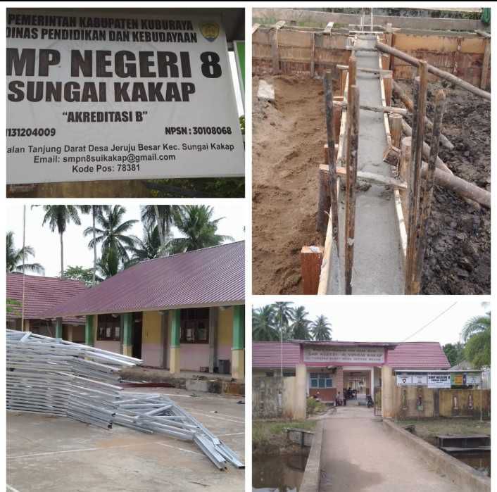 Proyek pembangunan menggunakan dana DAK di SMP Negeri 8 Sungai Kakap, Jalan Tanjung Darat, Desa Jeruju Besar, Kecamatan Sungai Kakap, Kabupaten Kubu Raya, diduga menyimpang dari aturan pelaksanaan.