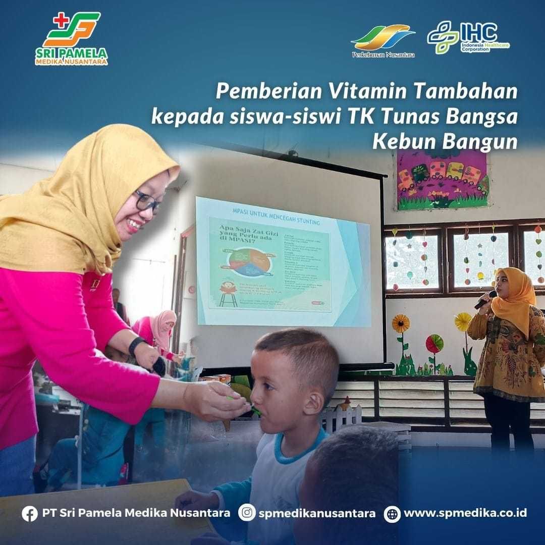 PT SPMN- Sebagai perusahaan yang bergerak pada bidang Kesehatan, turut berperan dalam upaya pencegahan stunting dengan menggelar kegiatan pemberian vitamin dan sosialisasi di TK Tunas Bangsa Kebun Bangun, Kabupaten Simalungun, Provinsi Sumatera Utara.