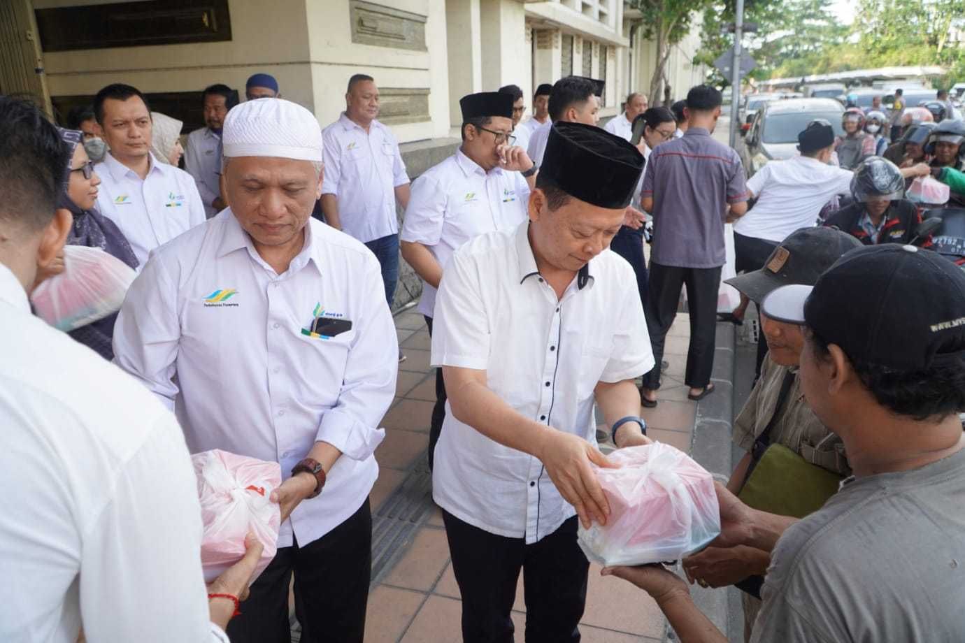 Jajaran direksi yakni direktur utama dan seluruh Senior Executive Vice President (SEVP) turut membagikan bingkisan takjil berupa makanan dan gula kemasan NUSAKITA produksi SGN.