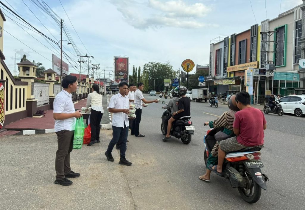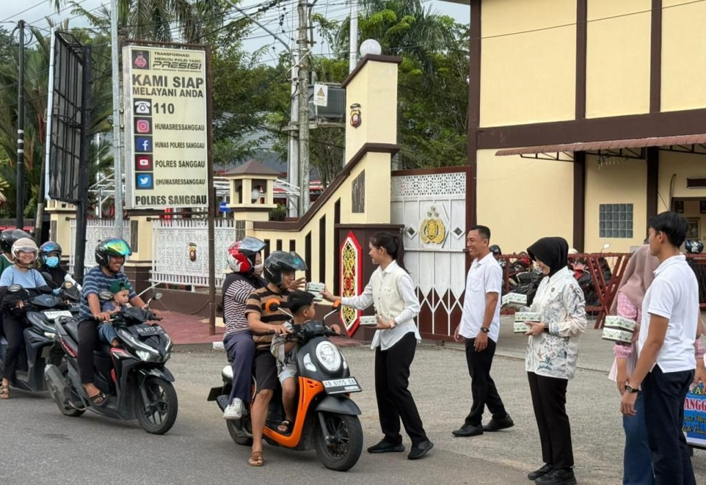 SANGGAU – Personel Satuan Reserse Kriminal (Sat Reskrim) Polres Sanggau menyemarakkan Bulan Suci Ramadan 1447 Hijriah dengan menggelar aksi sosial berbagi takjil. Kegiatan ini berlangsung di depan Mapolres Sanggau, Jalan Jenderal Sudirman No. 1, Kabupaten Sanggau, Minggu (08/03/2026) sore.