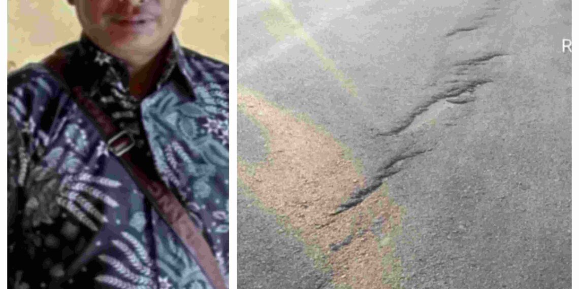 Hal ini secara kasat mata bisa dilihat langsung kondisi jalan dimana dibeberapa bagian sudah ada yang turun pondasi jalannya. Dan ada juga aspalnya mengelupas. Diduga keras dikerjakan tidak sesuai bestek.