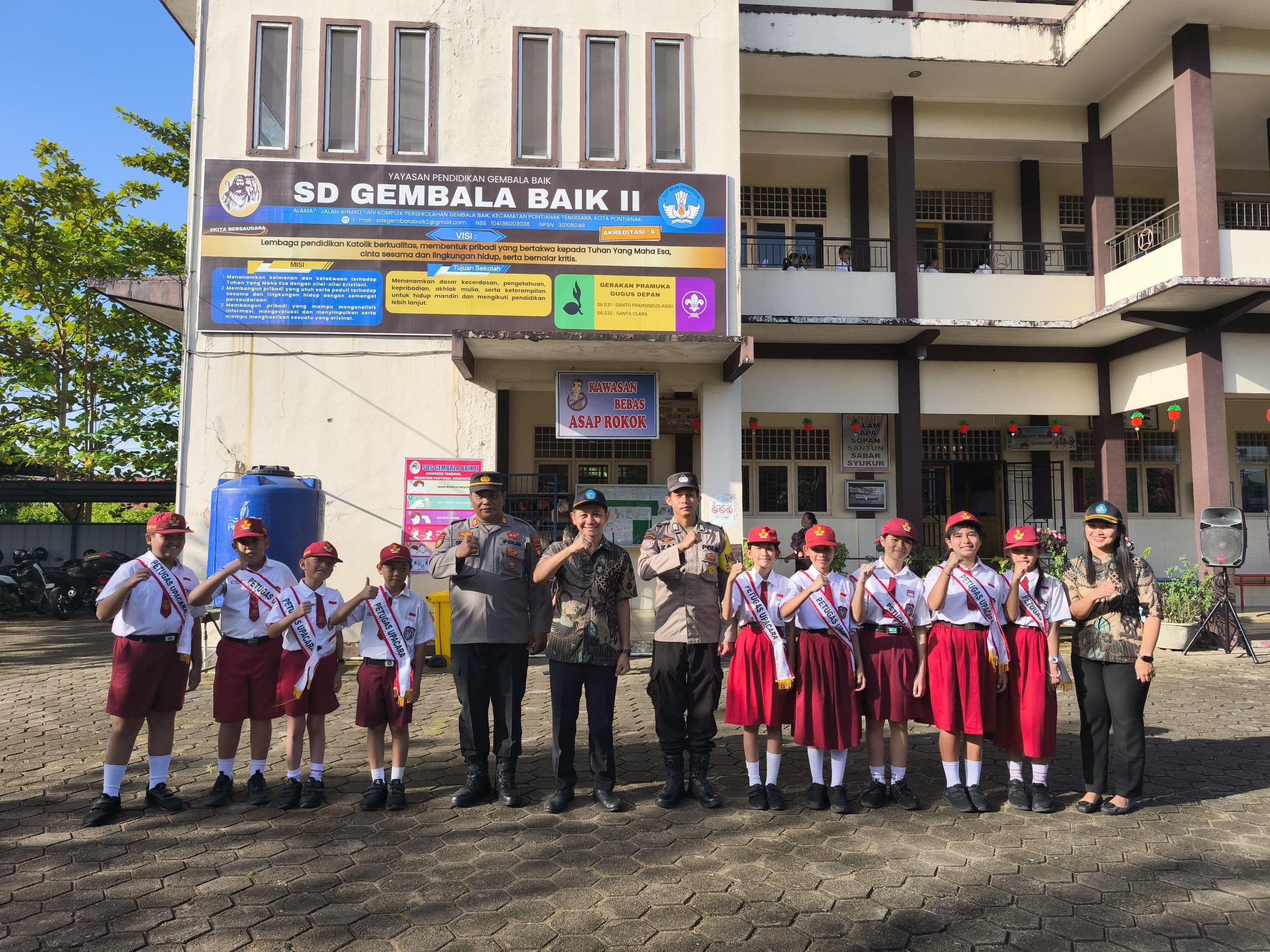 Waka Polsek Pontianak Selatan AKP Sutardi, S. Sos., mewakili Kapolsek Pontianak Selatan bertindak sebagai Pembina Upacara di SD Gembala Baik II Kota Pontianak pada Senin (10/2/2025).